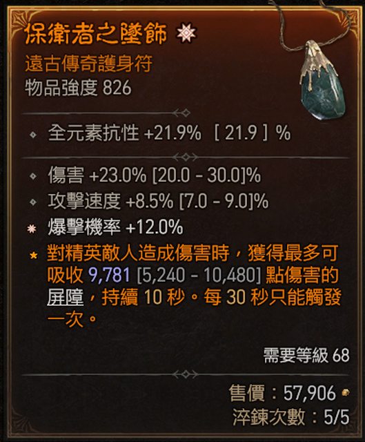 5. 二太古護身符 攻速 跑速 2E