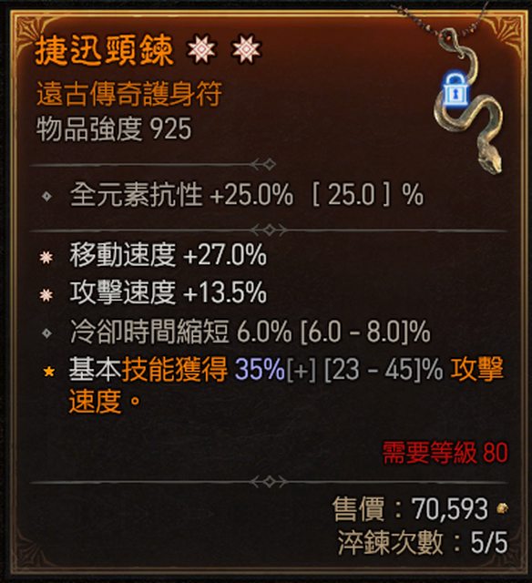 6. 二太古護身符 攻速 跑速 1E (已售出)