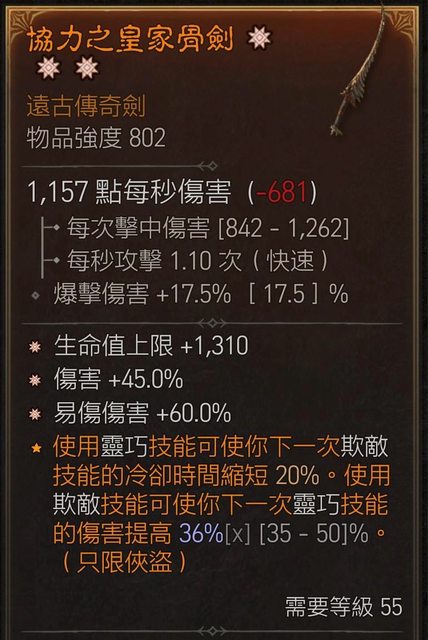 物品等級802 需求裝備等級55