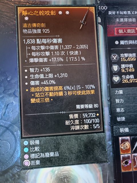 物 品:三太古單手劍(智力/生命/傷害)