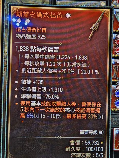 標題Re: [競標] d4 三太古匕首 敏命爆傷 標p幣