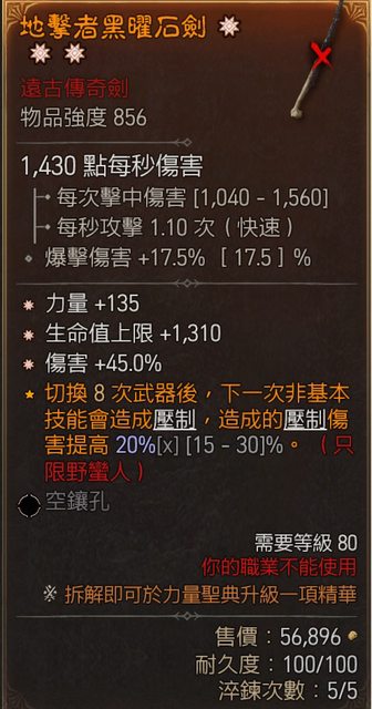 標題[競標] D4 S4 三太古單手劍(力量/生命/傷害)