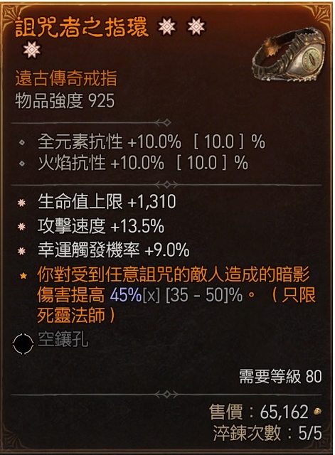 標題[競標] D4 S4三太古戒(攻速/幸運/生命)