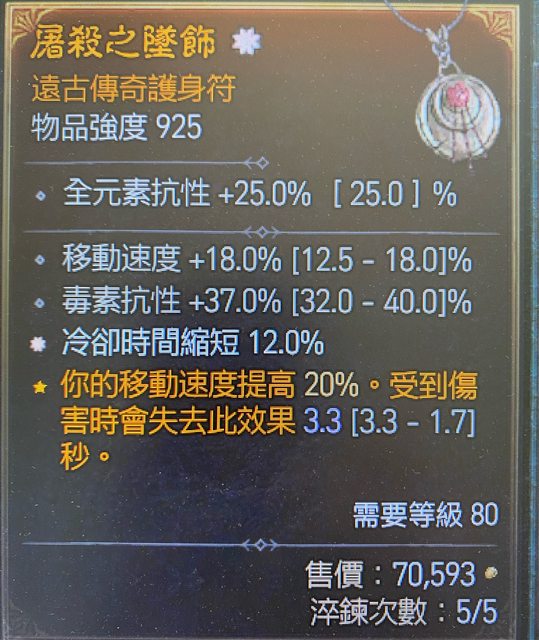 標題[競標] D4 S4單太古冷卻 移速 毒抗 項鍊