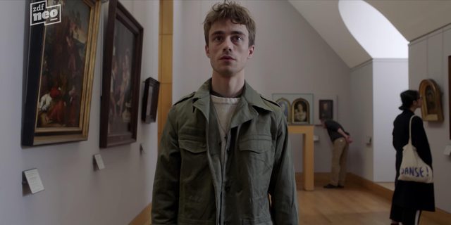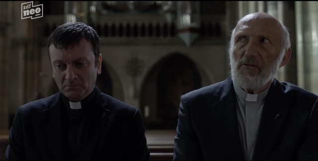 果然 Florence 跟 Antoine講了多少波希故事他都聽不懂、但找到一張波希畫作為封面的重金屬 CD 他其實早就愛不釋手!原來波希藝術如此親民早就環繞他身週!接下去查案也發現藝術其實很生活化未必多高高在上:先約談死者 Cédric幾位年輕朋友,就知他是個波希崇拜者恐怕自己就有在模仿創作;再約談 Cédric姊姊與女友,則知他花天酒地關係很亂享受人生,簡直和波希畫中光怪陸離的「墮落樂園」87% 像;再去神學院訪談 Cédric神父師長們,發現他雖花天酒地卻是藝術史學霸、雖生活墮落還搞男同但對信仰極有看法、令部分神父刮目相看卻亦有人橫眉豎目...