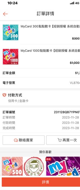 標題[PC] 售 mycard 點數1000點 88折