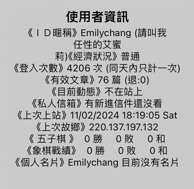 同日,發現Emilychang有上線紀錄
