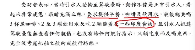 剛剛看某YTR原來引水員上船會要 船上的餐點 例如龍蝦大餐之類的 帶回去吃 誒…想說是外國才會發生的勒 剛剛看另一個事故 原來台灣引水員也會和印度人要早餐 https://i.imgur.com/absuyo5.jpg