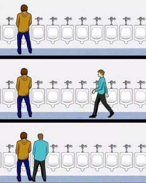 會有默契的站成 中間隔一個便斗