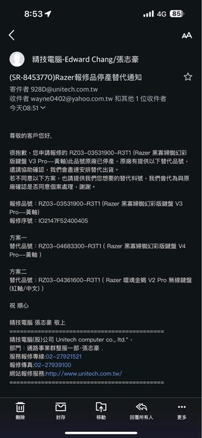 V3 Pro購買為112/4/21,RMA回來是112/7/31,保固到114/4/21