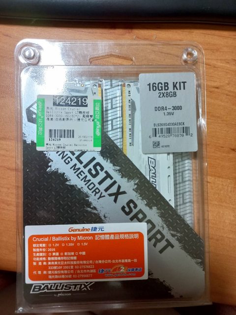 標題[賣/全國/皆可] 美光 Ballistix白 DDR4 16G(8*2)