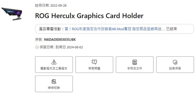 ◎硬體型號:ROG Herculx 顯卡支架