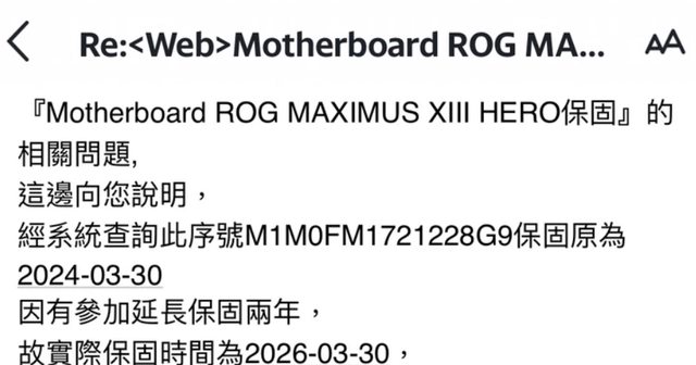 主機板保固 + 延長證明到 2026 年 3 月 30