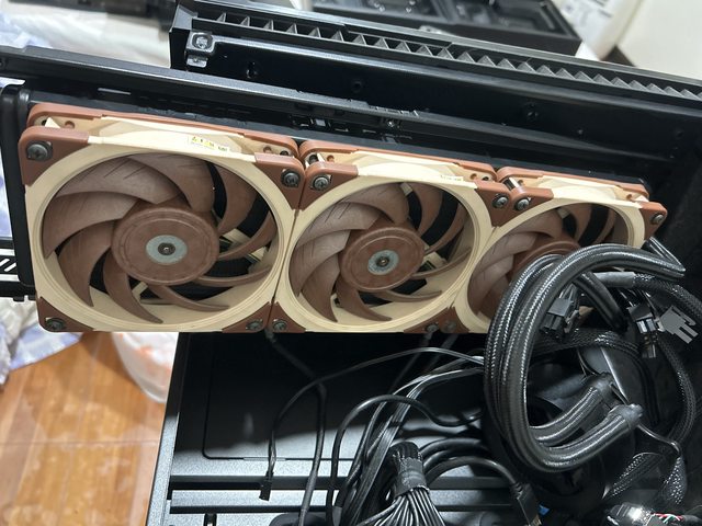 原本水冷的風扇一個故障被我丟了,所以才上三顆貓扇。