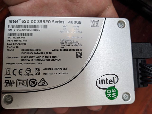 4.SATA SSD:intel DC S3520 480G(售出)