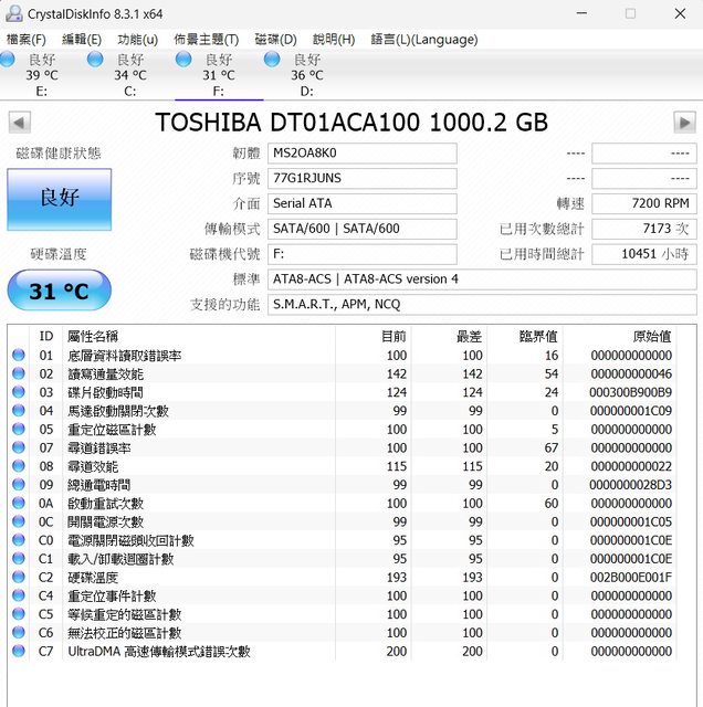 1.TOSHIBA 3.5吋 1TB HDD