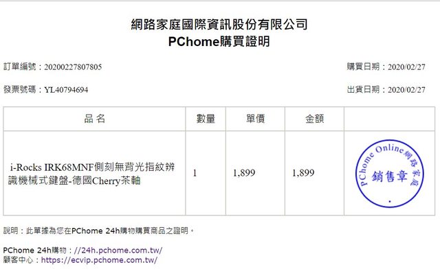 B.2020/02/27 PCHome購入,已過保