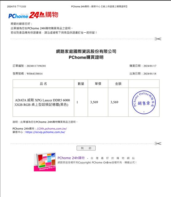 ◎硬體型號: ADATA Lancer DDR5-6000 32GB 黑色