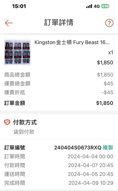 記憶體 2024/04/04購入