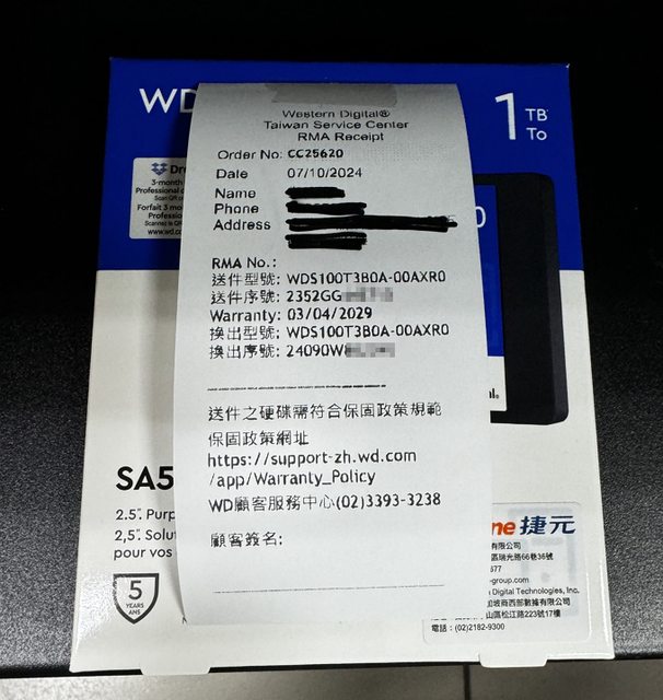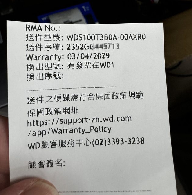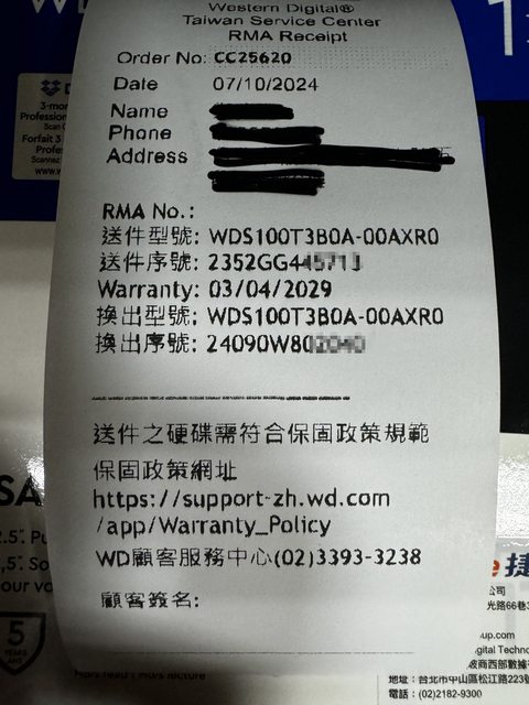WD 維修中心RMA換新證明