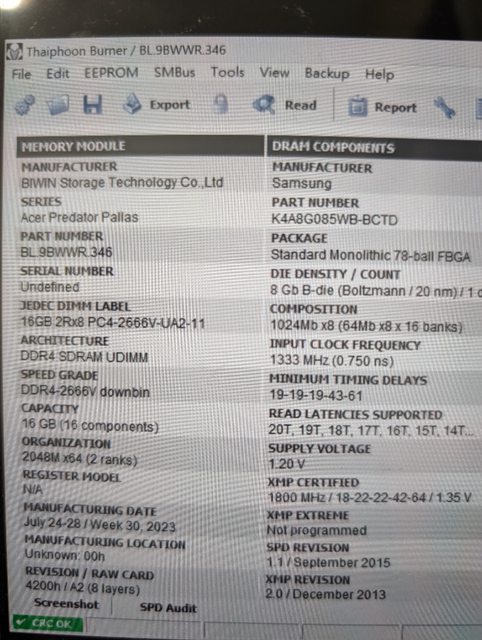 Thaiphoon讀RAM 三星B-Die 3600 CL18