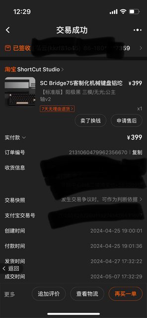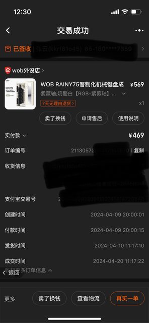 113年4月從淘寶購買雨75與橋75鍵盤,為鍵盤原裝軸體,