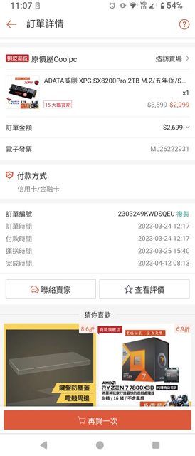 ◎硬體型號:xpg sx8200pro 2t (禁止販售未拆封之物品,贈品、獎品、RMA品、電腦相