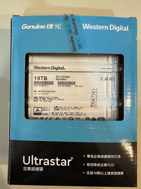 標題[賣/台北/皆可] WD HC550 16TB 捷元貨