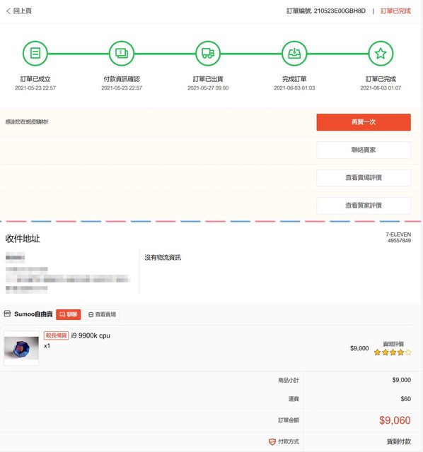 (更新:目前僅剩9900k,因有同時張貼於不同賣場,所以下單前請先來信確認,謝謝)