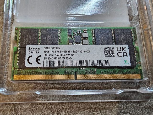 ◎硬體型號: SK Hynix RAM 16GB DDR5 5600MHz SODIMM, 筆電記憶卡