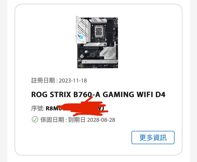 1. 2023/11購入,已註冊保固至少依出廠日至2028/8/28,盒裝齊全使用正常。