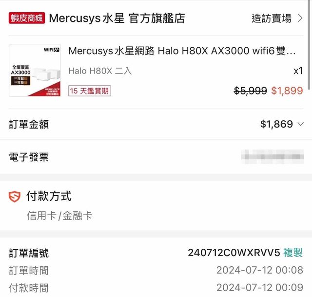 標題[賣/全國/皆可] Mercusys水星網路 H80X