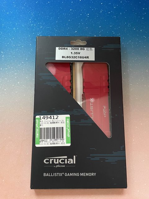 ◎硬體型號: 美光ballistix ddr4 3200 8Gx2 桌上雙通道記憶體 紅