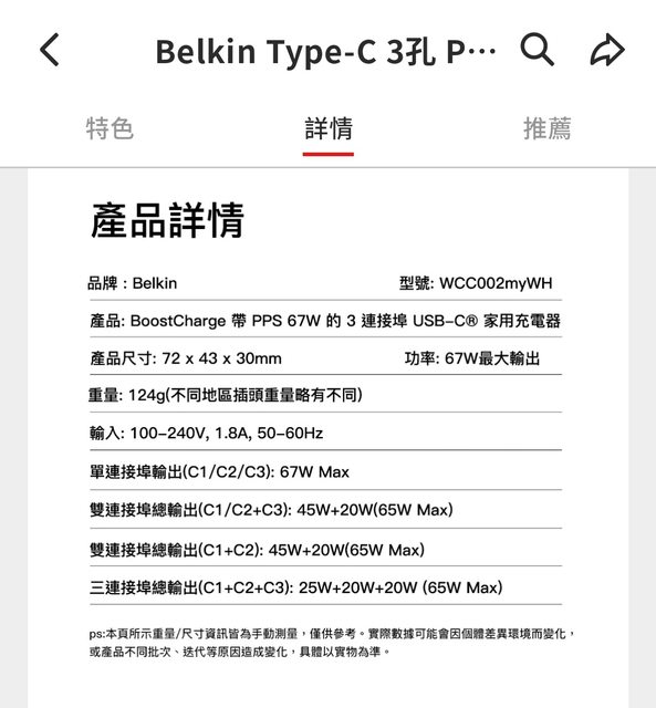標題[賣/全國/皆可] Belkin Type-C 3孔 PD 旅充-67W(