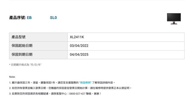 2. Monitor: Zowie XL2411K 144Hz DyAc 24吋 保固到 2025-04-04