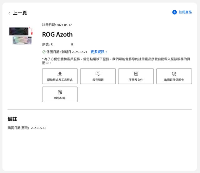 3. Keyboard: ROG Azoth 機械鍵盤 黑 茶軸 保固到 2025-02-21