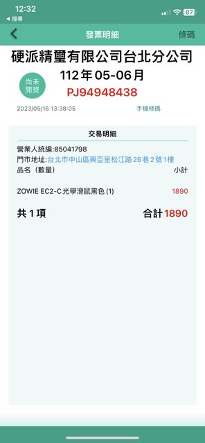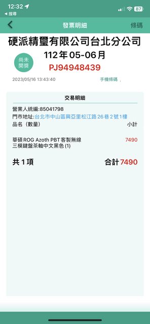 硬派門市購入的電子發票