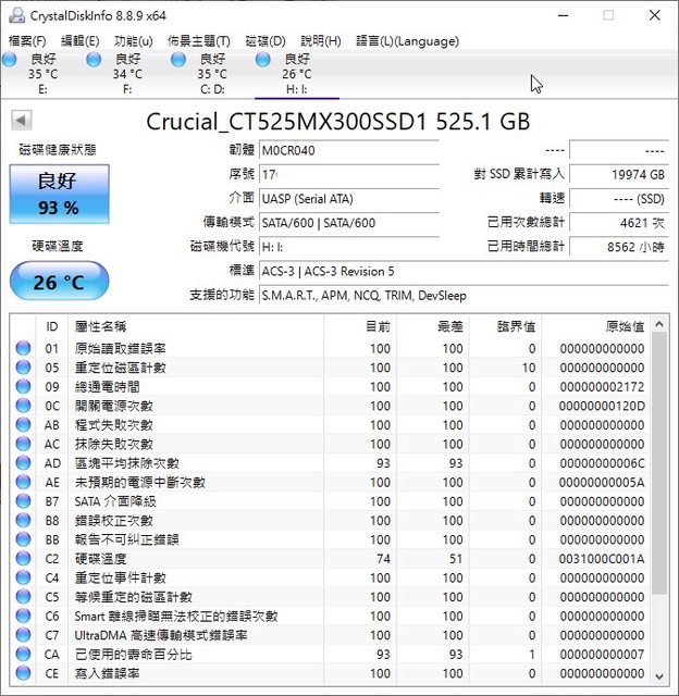 ◎硬體型號: 美光 MX300 525GB 2.5吋/Transcend 創見1TB MTE220S M.2 2280 PCIe Gen3