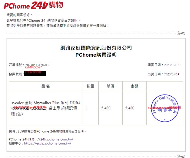 出貨後會給予"購買證明"PDF正本以方便未來保固可出保。