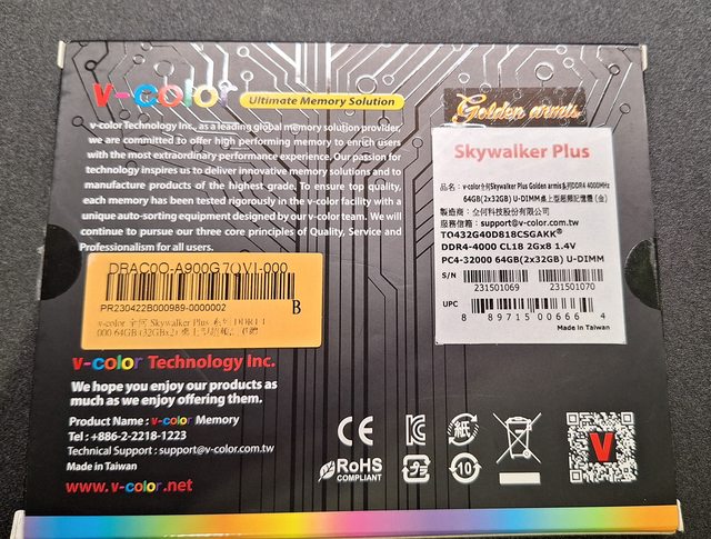 標題[賣/台中/皆可] V-color全何DDR4-4000 64G(32*2)