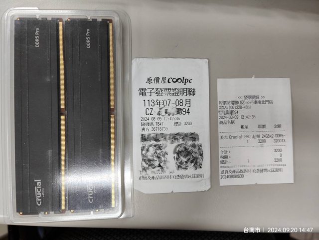 標題[賣/台南/面交] 美光DDR5 6000 24Gx2 雙通