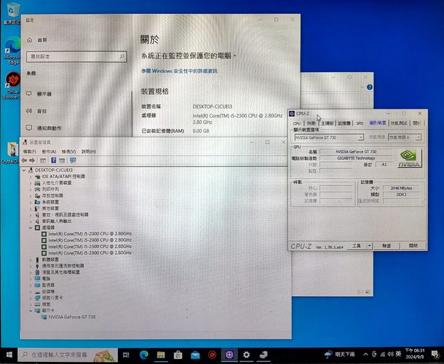 ◎硬體型號: 1. i5-2320+Asus P8Q67-M D0套裝主機板+DDR3 4G*2 2. FX-6100+微星 760GMA-P34主機板+ DDR3 4G*2 3. 技嘉 GT 750 1G亮機卡 4. 華碩 GT 730 2GD3亮機卡 5. 技嘉 GT 730 2GD3亮機卡 6. 微星 N640 2GD3亮機卡 ◎欲售價格: 1. $400 2. $400 3. $350 4. $250 5. $250 6. $250 ◎品樣狀況: 1. 已過保.測試正常. 2. 已過保.測試正常 3. 已過保.測試正常 4. 已過保.測試正常 5. 已過保.測試正常 6. 已過保.測試正常 ◎佐證資料: 1.