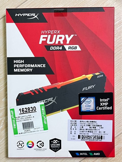 3. RAM: Kinston HyperX Fury RGB DDR4-3600-16G(8GB*2) 黑