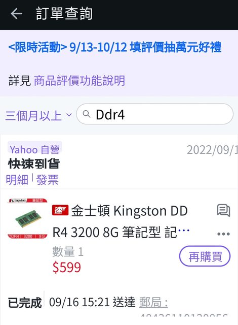 金士頓kingstone記憶體購買證明及實務照片