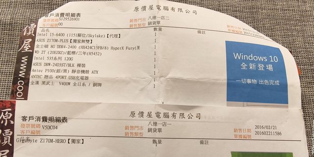 2015年購買,DRAM終身保,其他無保固