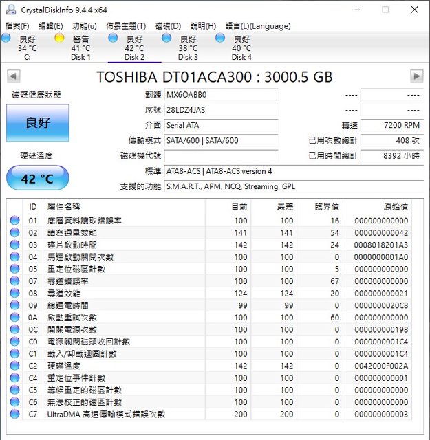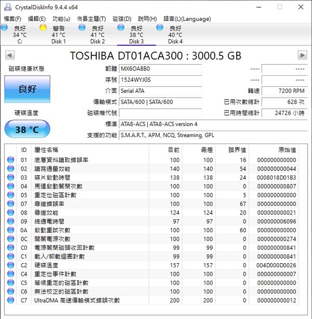 3TBx3 RAID退役,運轉時數長,有些有出現C4
