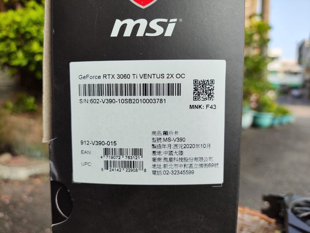 標題[賣/全國/皆可] 微星 RTX 3060 Ti VENTUS 2X OC