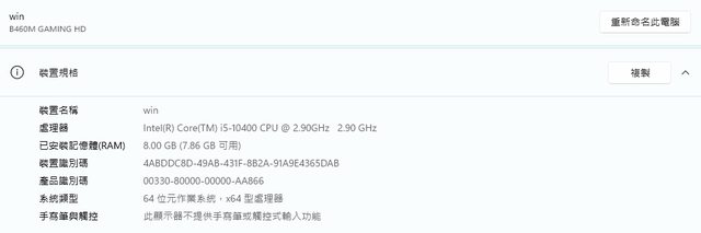 主機板:b460m gaming hd