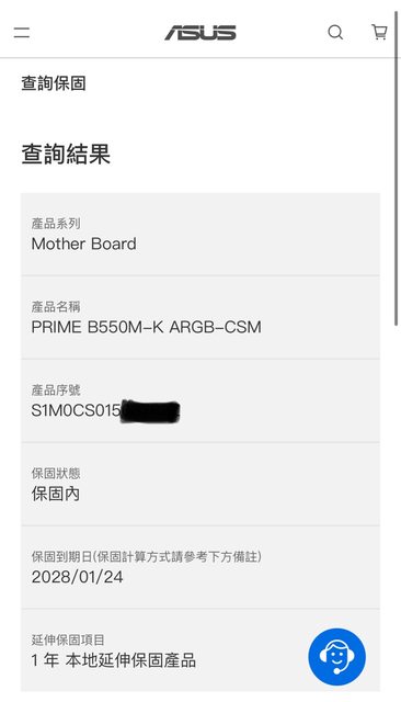 1. 主機板保固到2028/01/24