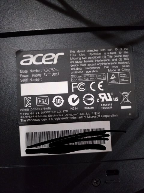 ◎硬體型號: acer KB-0759 套裝機附的鍵盤
